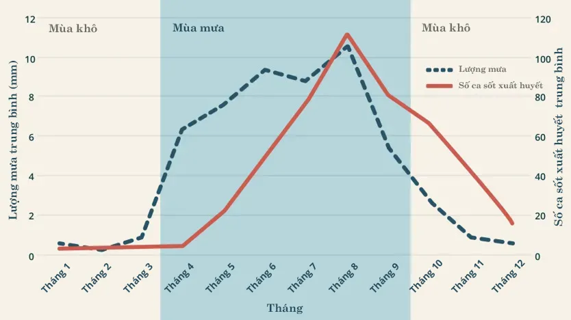 Dịch sốt xuất huyết có nguy cơ bùng phát vào mùa mưa hoặc mùa gió mùa lưu hành vì hầu hết dịch sốt xuất huyết xảy ra trong những tháng ẩm ướt và ấm áp hơn.2,3 Mùa mưa trùng với thời điểm số lượng muỗi con mang mầm bệnh sốt xuất huyết đạt đỉnh điểm.3